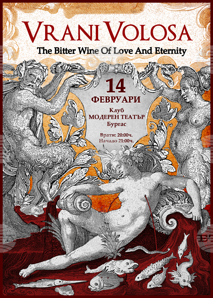 Бургаската метъл формация Vrani Volosa се завръща на родна сцена след едногодишна творческа пауза, за да зарадва своите почитатели. Концертът, насрочен за 14 февруари, ще бъде своеобразен поклон пред празника на любовта и виното и ще сложи финал на цикъла от изяви, посветени на представянето на четвъртия им студиен албум.